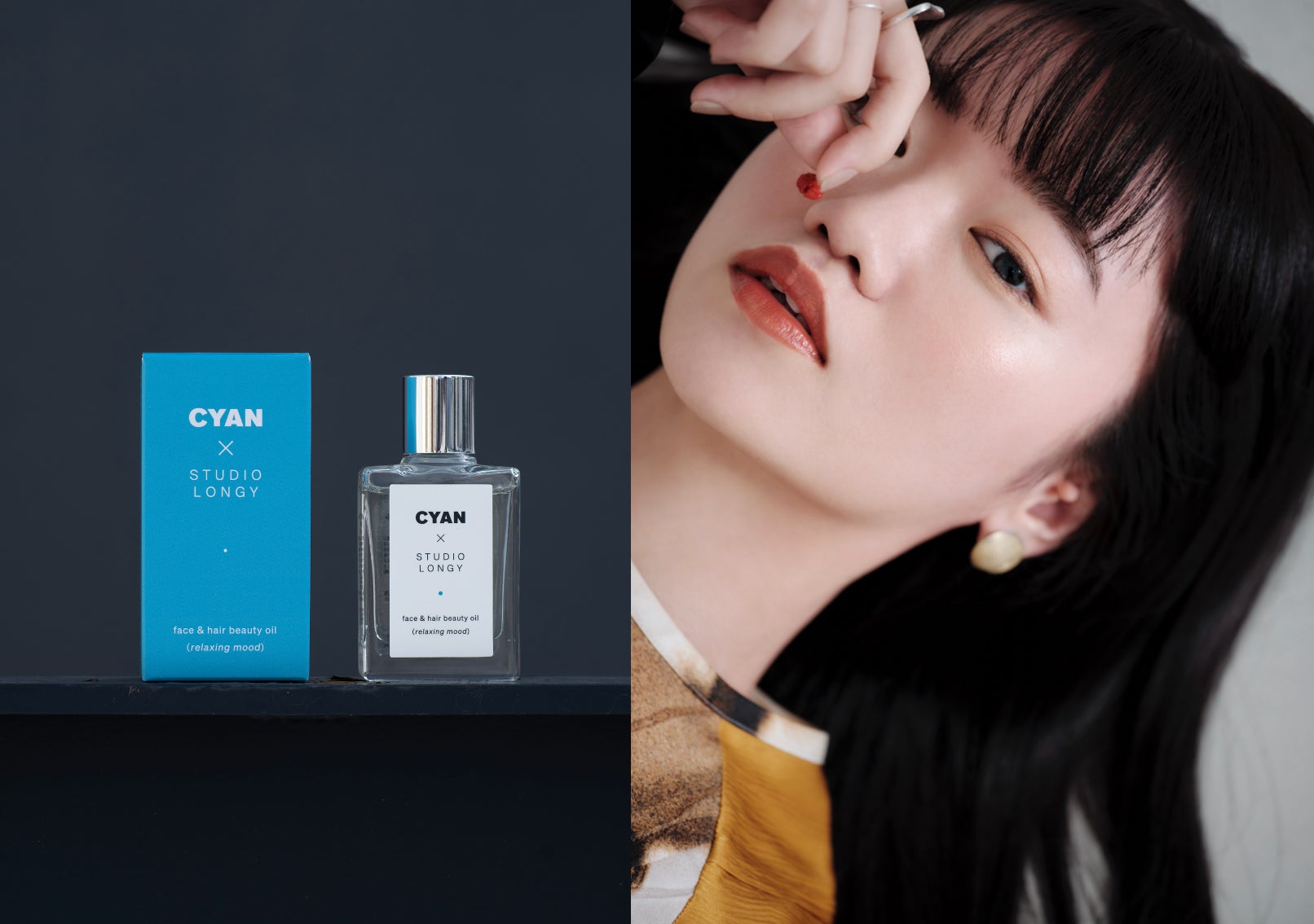 “CYAN10周年プロジェクト”第1弾として、まずは化粧品開発事業に着手。“CYAN × STUDIO LONGY フェイス & ヘア 美容オイル”を一部の蔦屋書店と全国のヘアサロン、オンラインストア等で3月29日から販売を開始した。価格は4,400円。