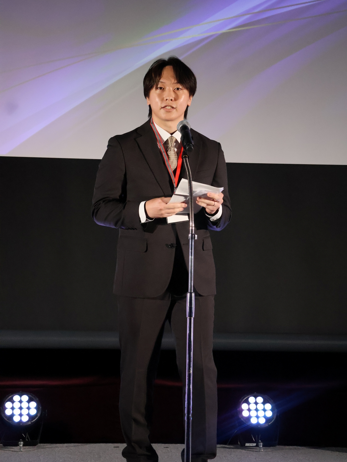 続いて、2024・2025年度の合格者から、代表者4名に盾が授与され、合格者スピーチが行われた。