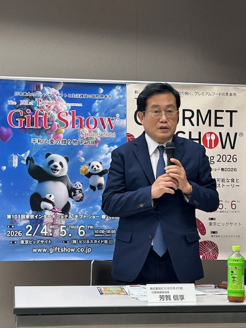 9月25日に行われた記者会見で、主催の芳賀信享社長は「101回目を新たな門出とし、ギフト文化のさらなる発展を目指す」と意気込みを語った。