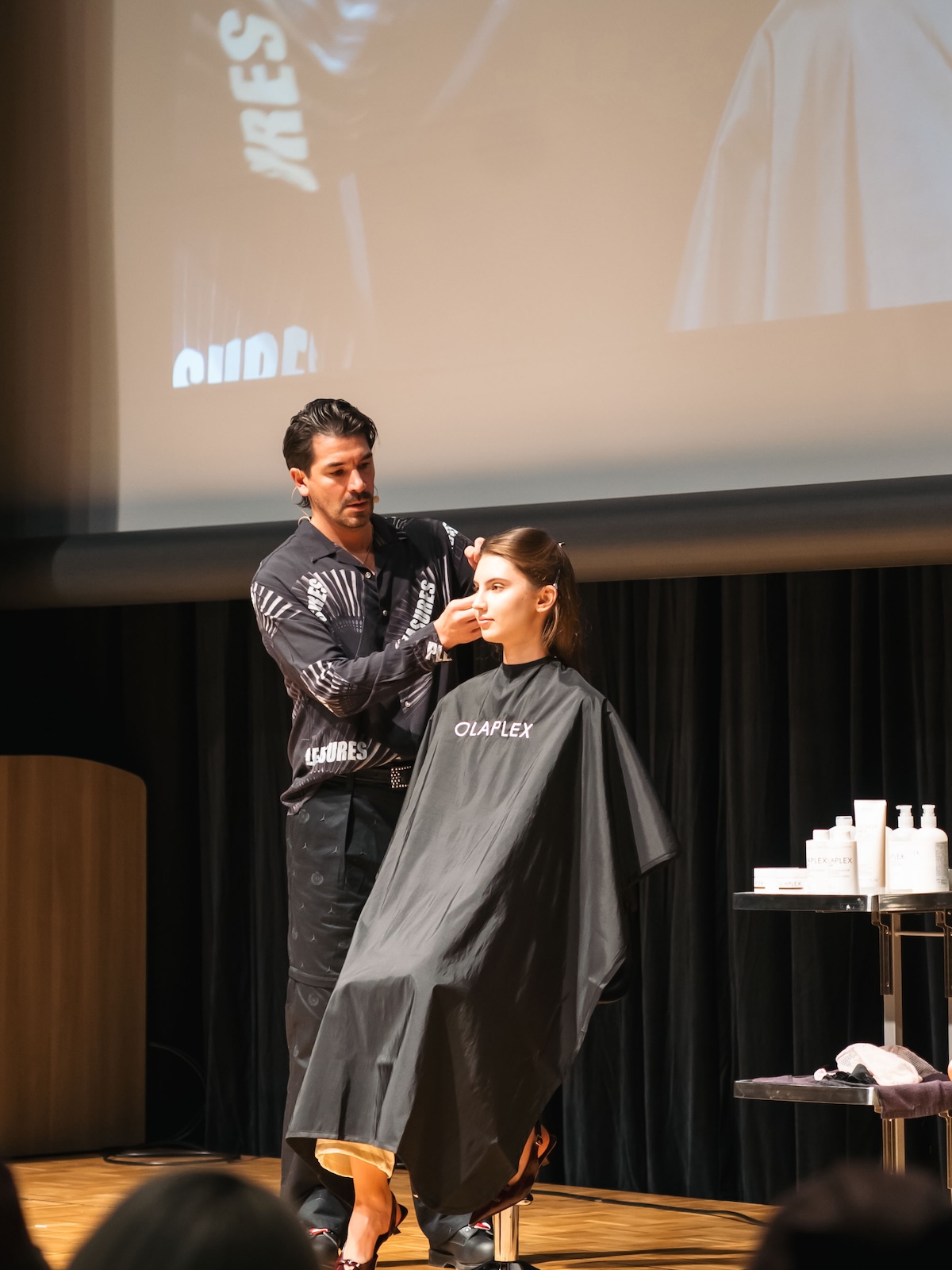 イベントの締めくくりには、「サンリッツ」のインターナショナルクリエイティブディレクター、レオナルド・リッゾ氏が登場。サロンのテクニカル哲学をベースに、「オラプレックス」を用いたケミカル施術とデザインの融合をライブで披露した。繊細なスタイリングとやわらかな光沢を両立させた仕上がりに、会場の美容師たちからは大きな拍手が送られた。