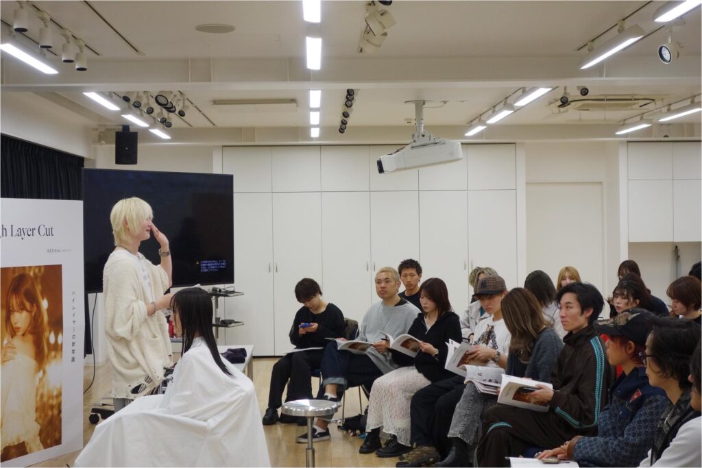 受講者は20代だけでなくベテラン世代まで、幅広い世代が旬のハイレイヤーを学びに集い、「そこまでレイヤーを入れるのは怖い」という声や、ハイレイヤーの巻き方などの質問も飛び交った。