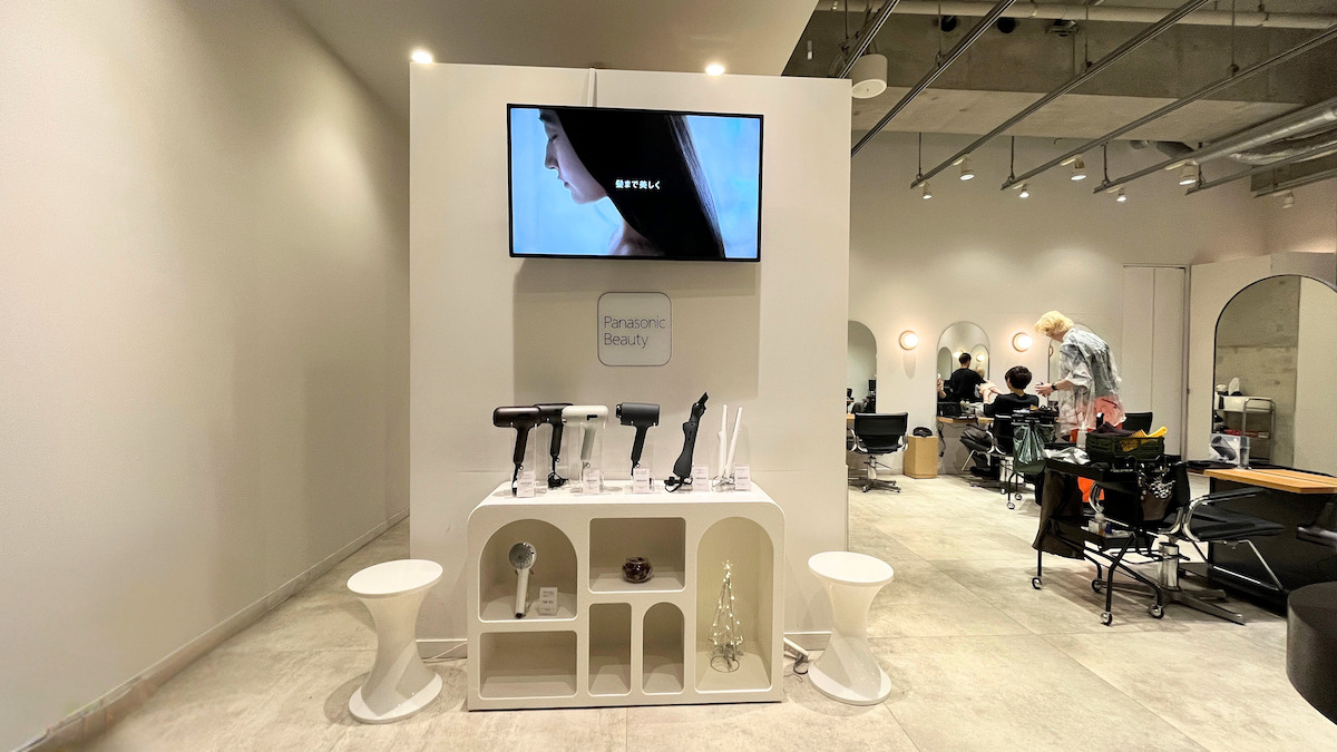 同店舗は、美容師と顧客が「最新家電を通して美容体験を共有する」ことをテーマにした新しいサロンの形。全席にドライヤー「ナノケア」を設置し、アイロンなどのヘアケア機器を自由に試せるスペースを設けた。美容師の施術と同時に、顧客が自ら美容家電に触れられるリアルな体験型サロンとなっている。