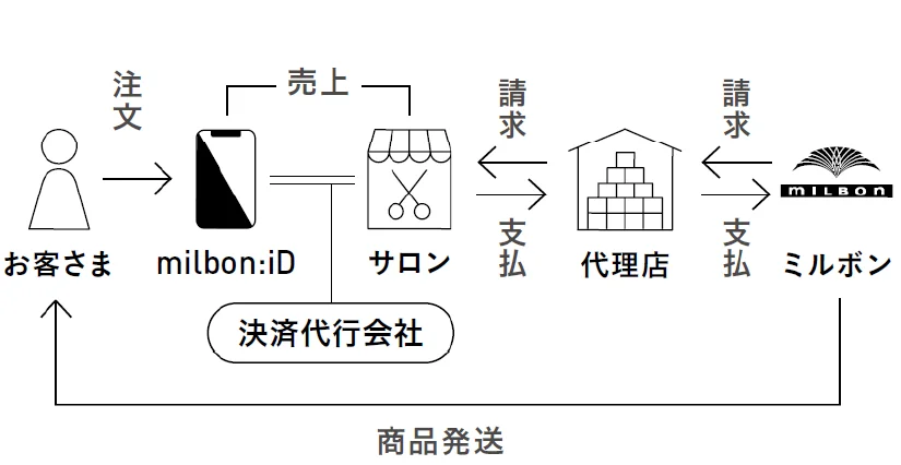 「milbon:iD」は、サロンで対面カウンセリングを受けた顧客のみが利用できる会員制オンラインストア。ヘアサロンがモール型EC内に自店ページを持ち、顧客は担当美容師が発行する専用QRコードから登録する仕組みだ。購入売上は美容室に計上され、物流や受注業務はミルボンが担う。来店機会の減少や販売負担といった美容室側の課題、購入タイミングのずれによる顧客側の不便、その双方を解消する形で生まれたBtoBtoC型プラットフォームとして成長を続ける。