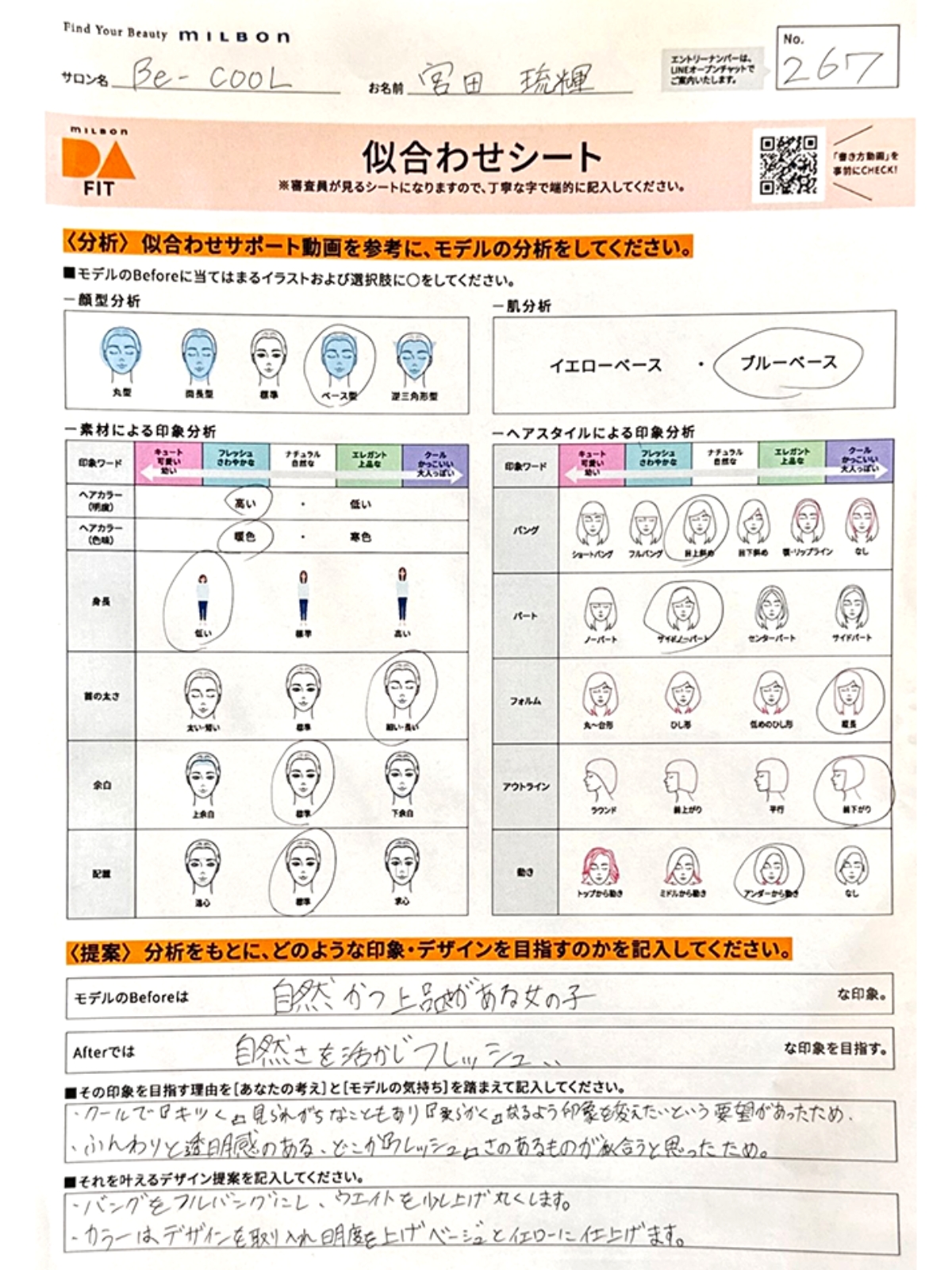25歳以下が対象。「似合わせ」をテーマとしたオンライン形式のコンテストで、全国から総勢236名が参加。「似合わせシート」を製作し、素材・カラー・メイク・印象の4つのテーマから、総合的に審査する。