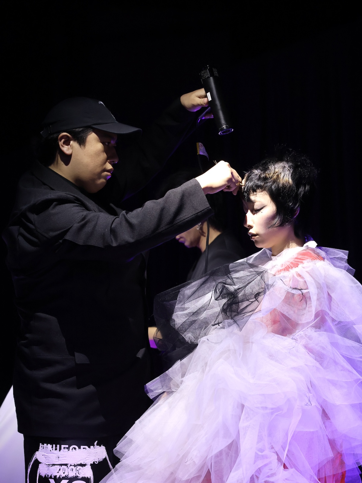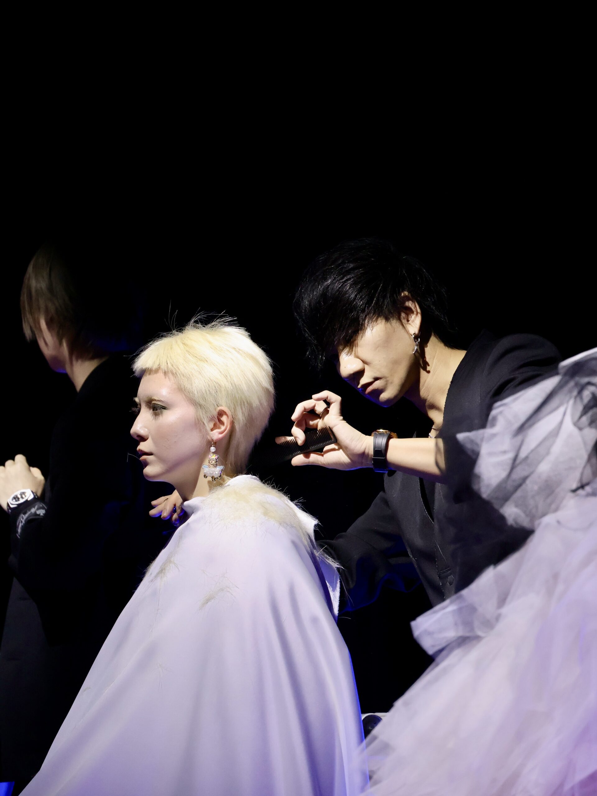 学生選抜チームは、2025年を通じて各種コンテストで結果を残した在学生で構成。限られた時間のなかで、技術力と感性を掛け合わせたヘアデザインをステージ形式で発表し、次代を担う表現力を示した。
