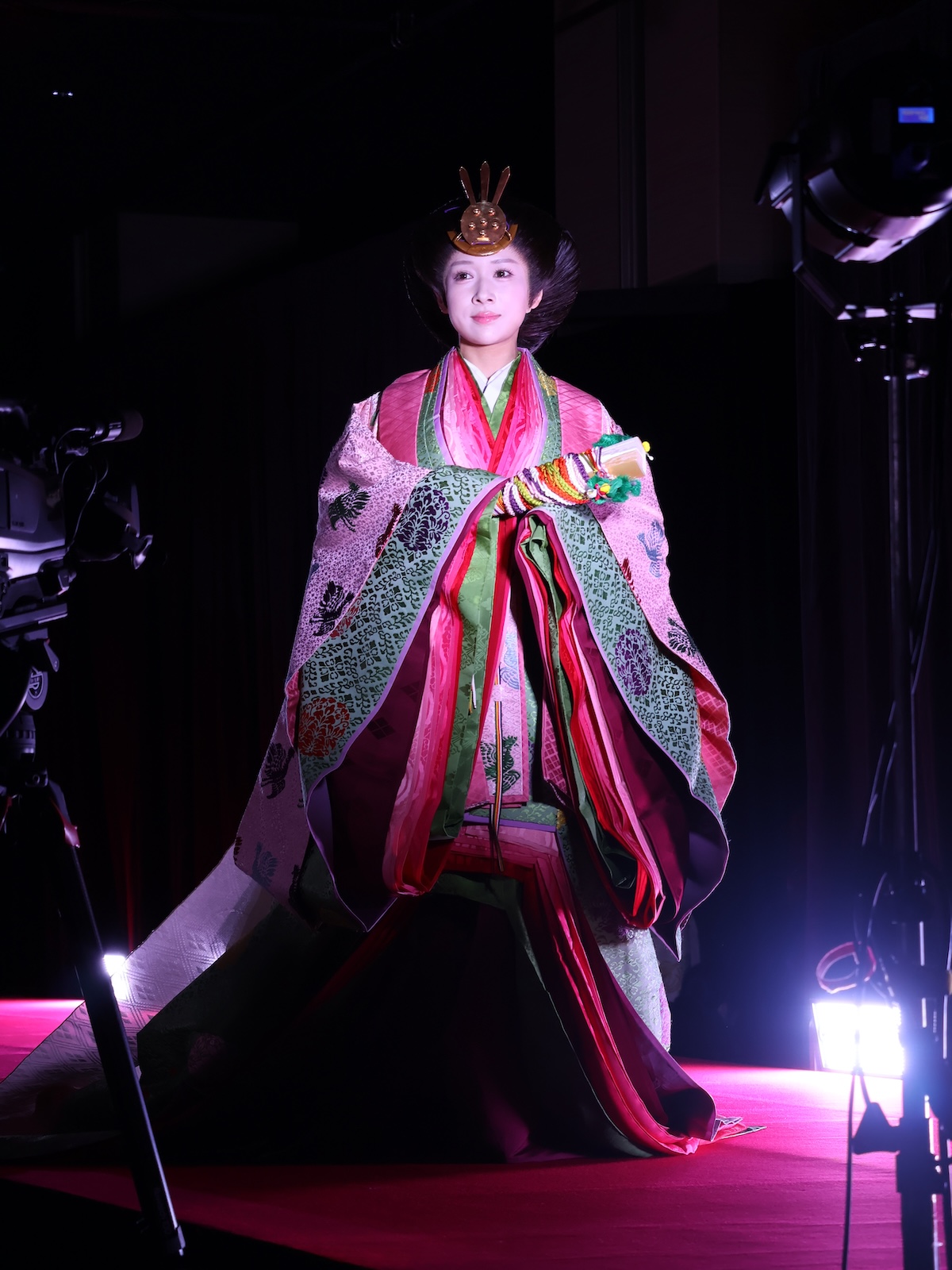 ショーの締めくくりは、荘司礼子理事長による日本の伝統美をテーマにした「十二単ステージ」。現代のヘアデザインと伝統文化を横断する構成で、イベント全体を締めくくった。