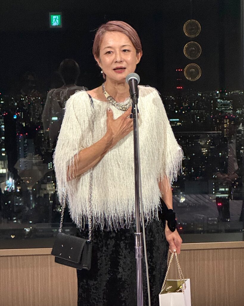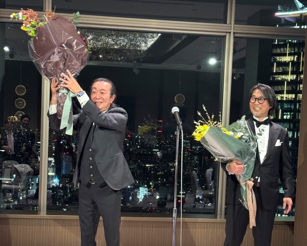 中締めで小野浩一副社長は「これからも格好いい表現者として突き進んでほしい。そして、お互いを思いやりつつ尊敬しつつ、人のためになるような人になってほしい」とスピーチ。最後はスタッフから感謝の花束が八木岡、小野両氏に贈られ、式典は盛況理に幕を閉じた。