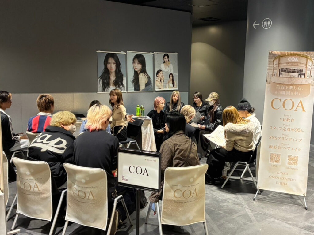 いずれもキャリア5年目以下の若手スタイリストが出演し、就職ガイダンスでの説明に加え、ヘアショーのステージも担当。努力次第で自分たちも到達できる場所というメッセージを技術と演出を通して学生たちへ伝えた。