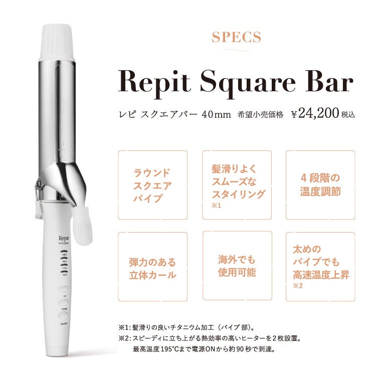 レピは“疲れた髪に甘い休息を”というコンセプトのもと2000年にソウルで生まれたプロフェッショナルK -BEAUTYブランド。これまでも、スタイリング・ヘアケア・ヘアカラーなどのサロンプロダクツにおいて革新的な技術で韓国の美容業界をリードしてきた。その中で、K-POPアイドルや俳優たちのヘアメイクの現場で「大きなカールが簡単に作れるうえに、驚くほど長持ちする」と機能性が話題となったのが今回のカールアイロン、スクエアバーだ。