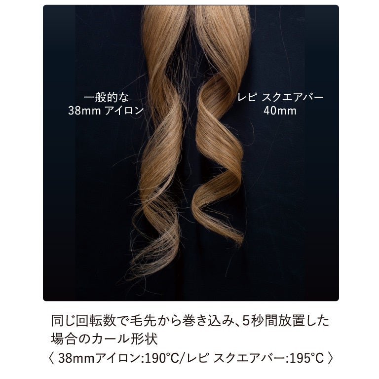 その最大の特徴は、同社が独自に開発した「ラウンドスクエアパイプ」。四角形と円形を掛け合わせたスクエア型のカールアイロンは、程よいテンションがかかることで、40mmという太巻きのパイプながら弾力とツヤのあるカールが長続きする。さらに、巻く時にありがちな「クレパス=髪が折れたようなアイロンの挟み跡」がつきにくい点もポイントだ。