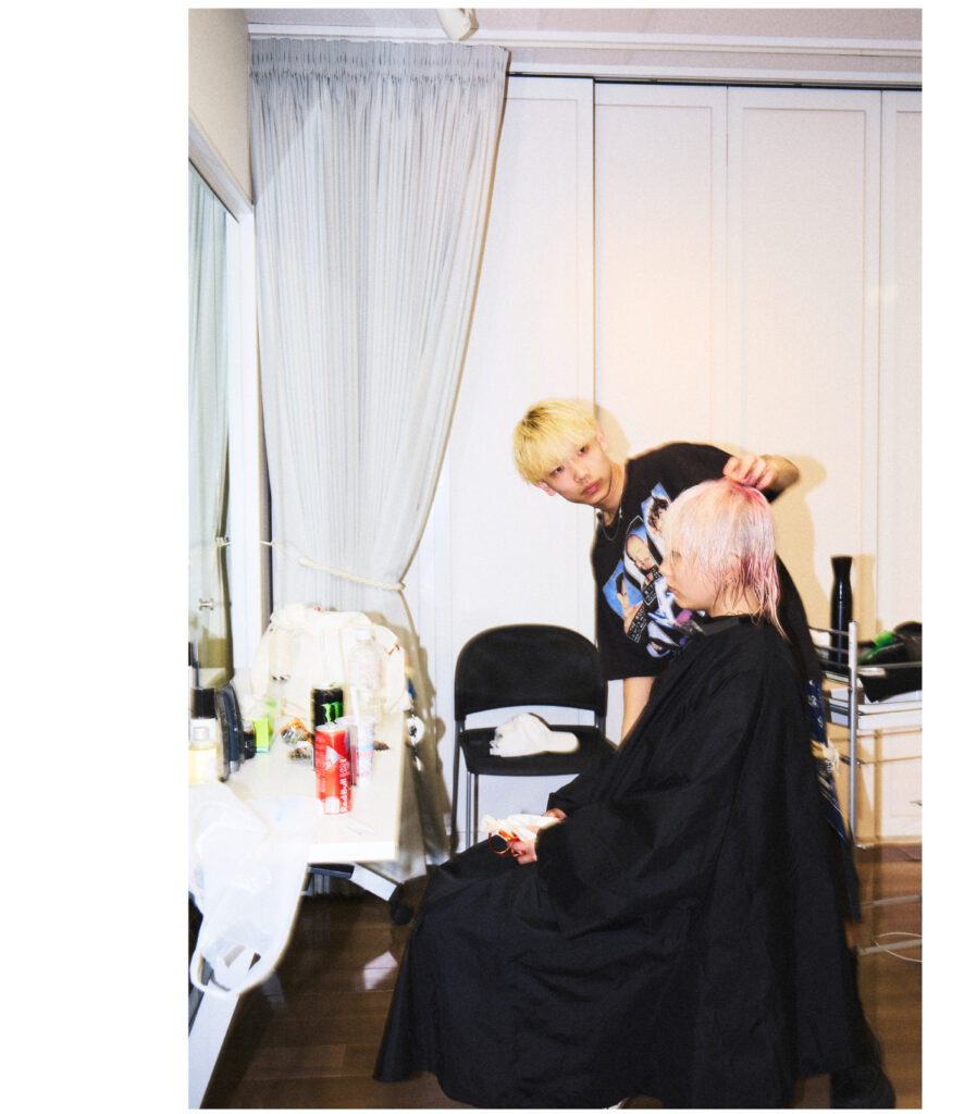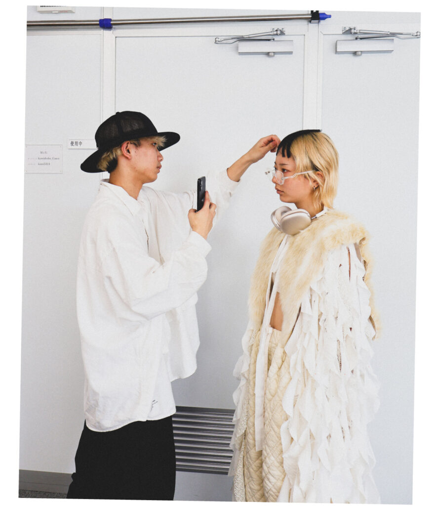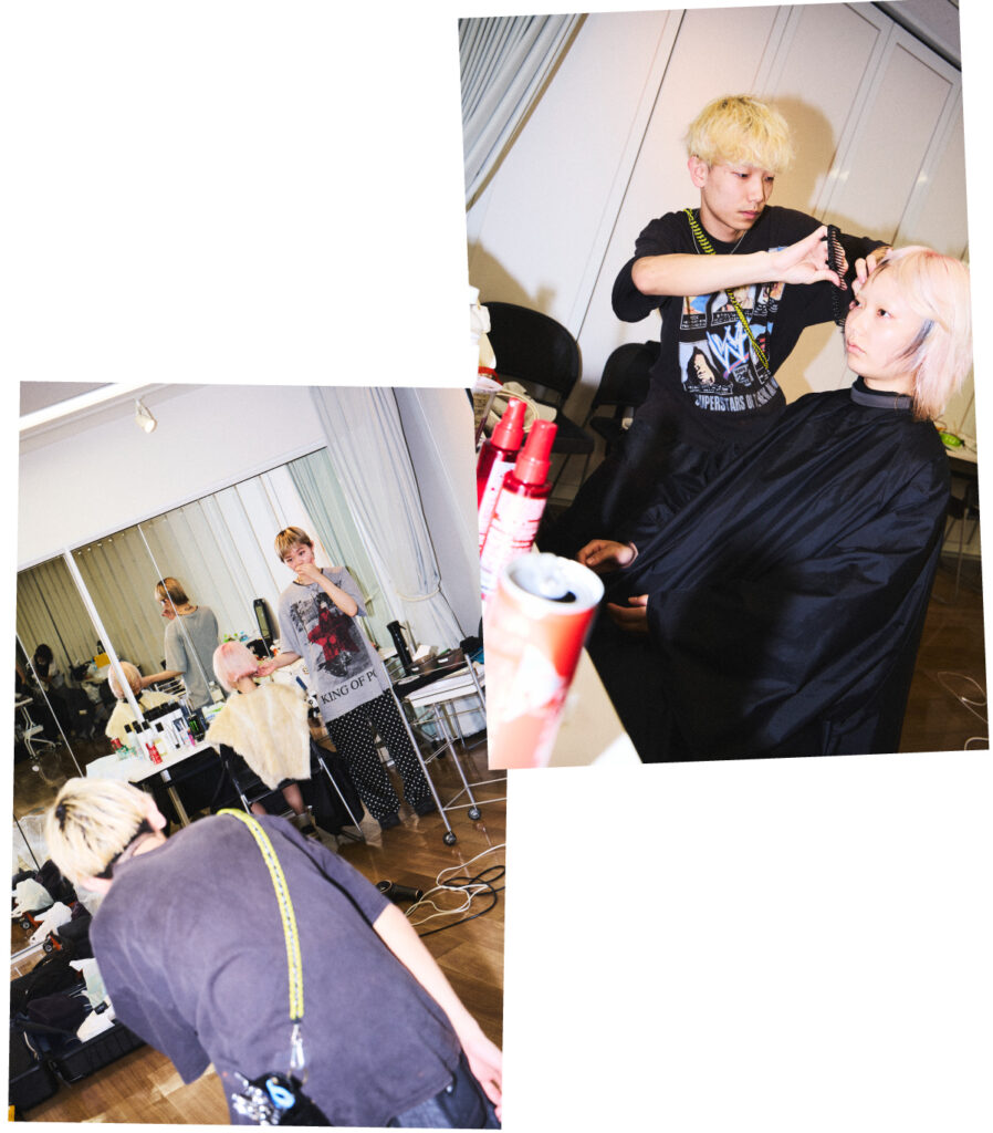 維駒:テーマとか決めても、結局いつも途中で変わるんですよね。僕はいつもモデルさんを起点に“作りたいヘア”がまずあって、テーマは後からついてくる感じなんです。でも直前になって『やっぱこっちやな』ってガラッと変えちゃうことも多くて。そのたびに衣装とかメイクにも影響が出ちゃうんで、難しいですね…