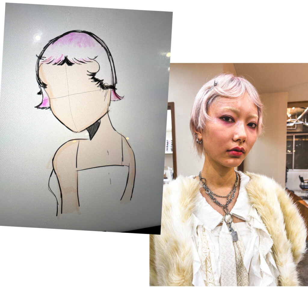 「最初は切る幅も大きいし目を引くからベリショのつもりだったんですけど、考えてる途中で『これ自分っぽいのかな』って感じて。僕自身そこまでベリショが好きってわけでもないし、だったらモデルさんに一番似合う形、自分らしいデザインを突き詰めた方が絶対後悔しないなと思って、変えることにました」