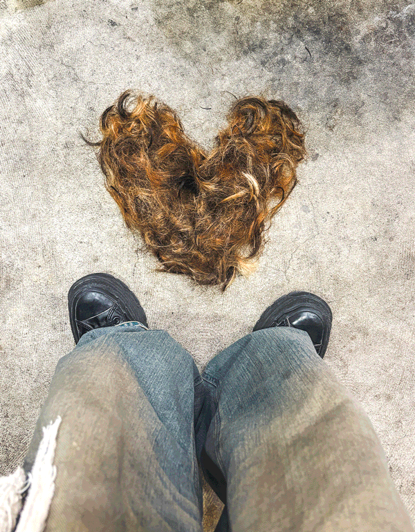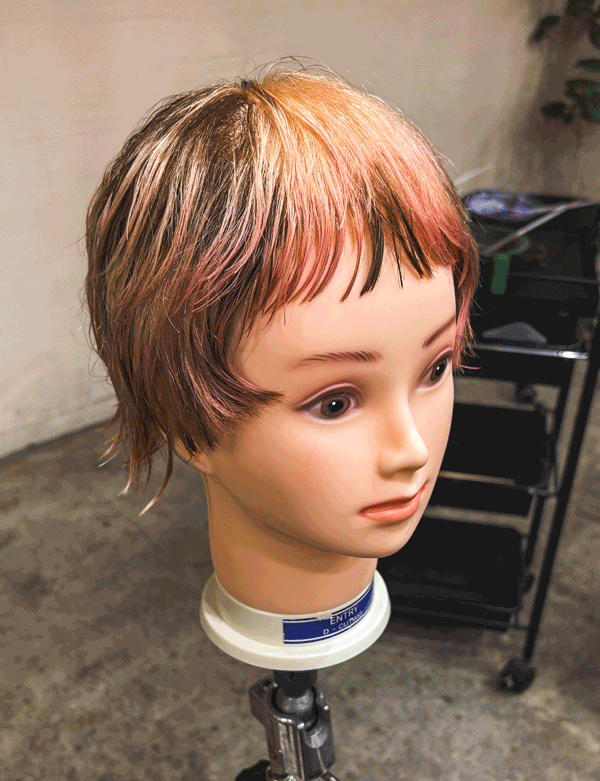 カラーの試作。ブリーチ練習中の後輩からウイッグを買い取ることで時短する術を発見(8月31日撮影)