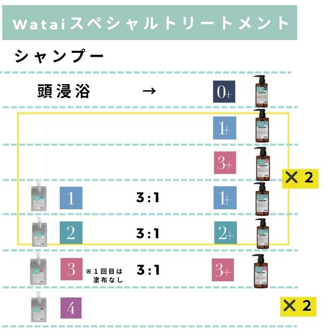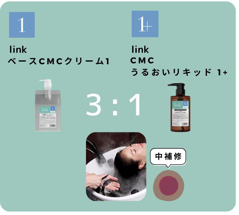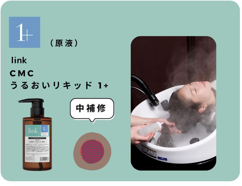 ・使用方法:毛髪の水分を補修する「1」と高濃度のアミノ酸が主成分の「1+」を3:1で塗布。