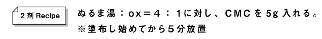 薄い薬液から濃い薬液に変わると濃度変換がおき、酸化効率が良くなって定着率も上がります。CMCを入れることで、やわらかさがアップし、ミラーの質感も向上します!