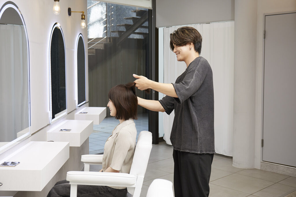 前髪や顔周りなどお客さまが気にされているところは根元から伸ばしつつ、それ以外の全体は根元を空けて施術するなど、臨機応変な対応力も求められると思います。