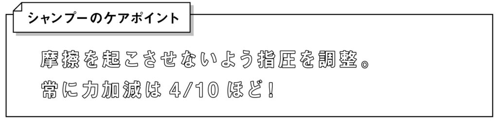 なので施術時には、力を抜きすぎず入れすぎず。最大10の力でいうと、4くらいのテンションを意識してダメージを最小限にします。均一に優しく扱うことで、仕上がりのツヤもぐっと変わります!