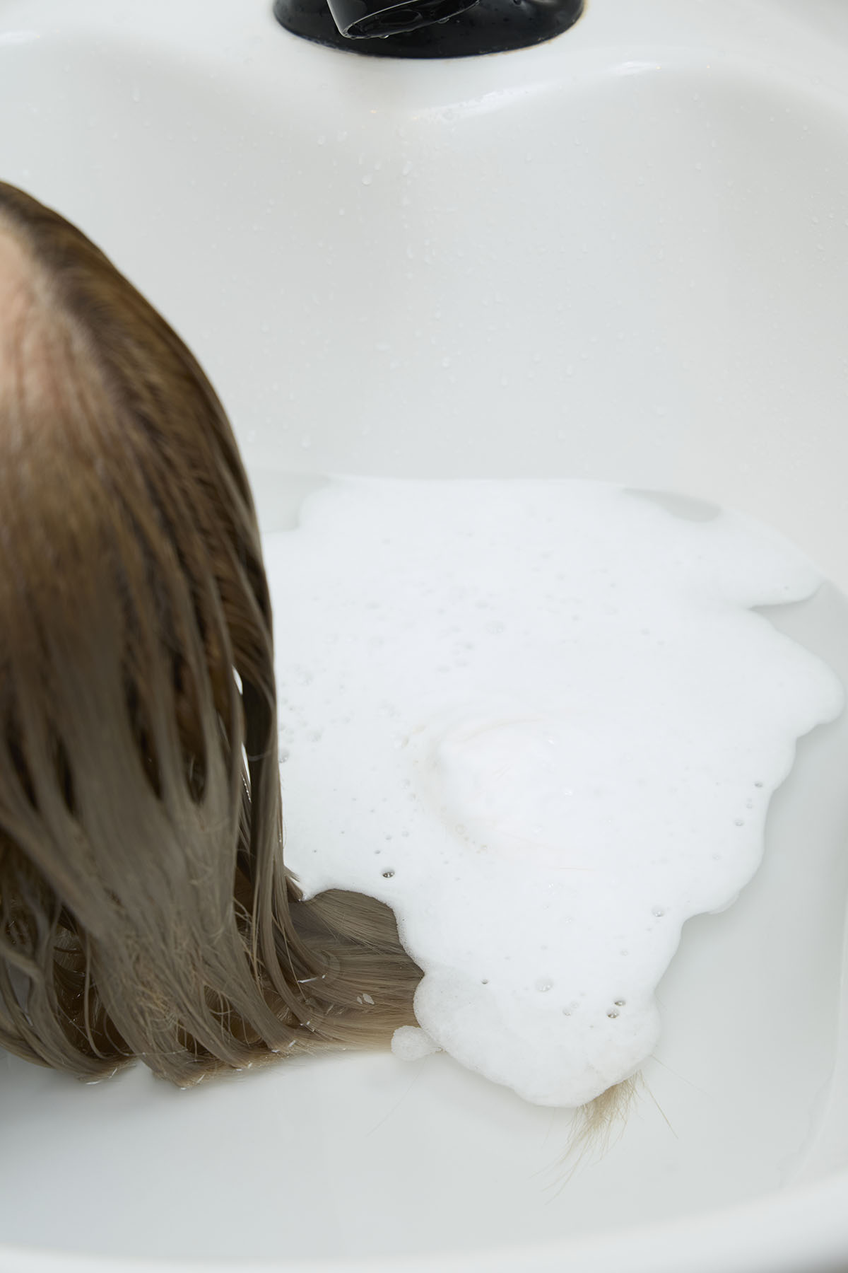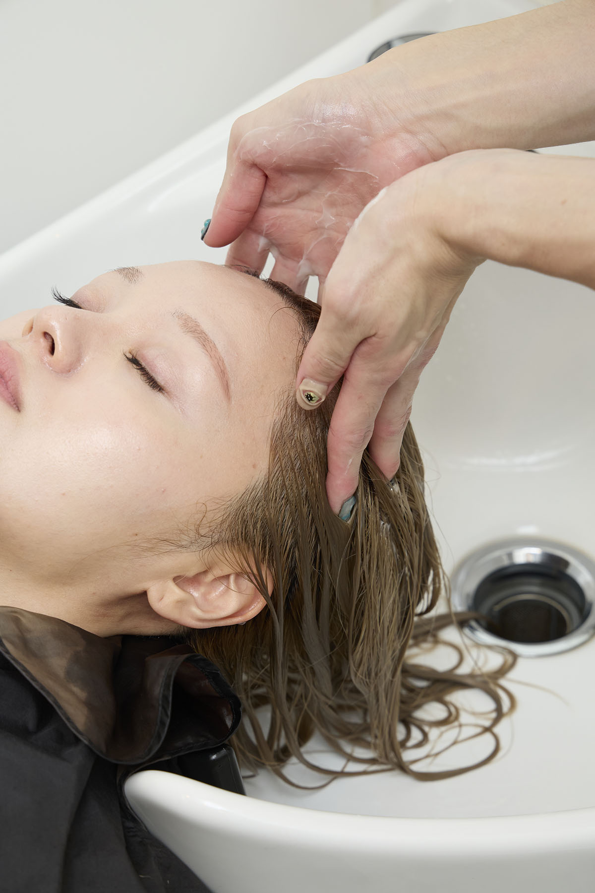 その後、アルカリ除去に特化したシャンプーと髪表面のアルカリを吸着する後処理剤を使って、髪表面をなめらかに整えます。