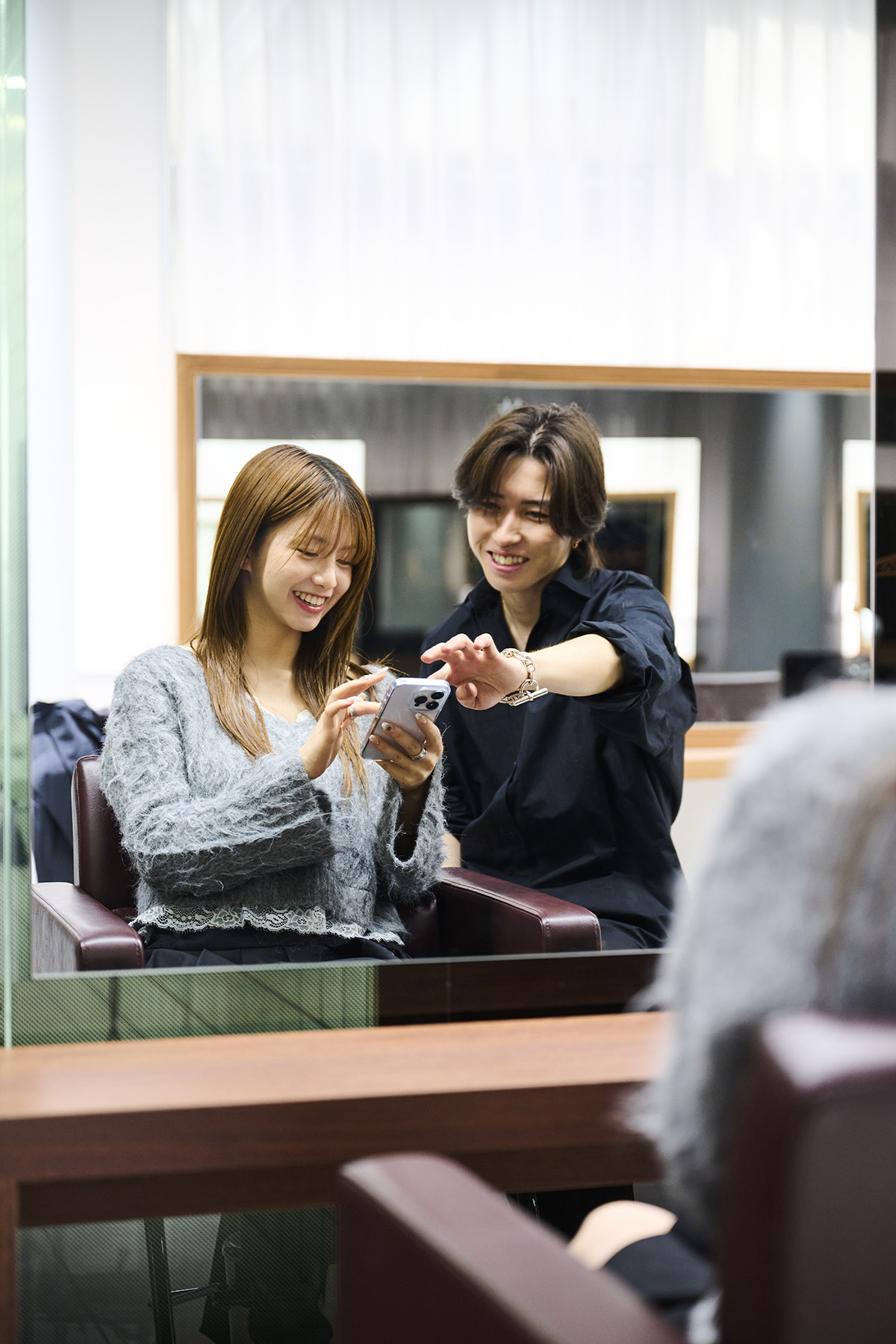 そこで、僕が提案するのは、酸熱トリートメントと組み合わせた上質で深いカラー。1本1本が整うことで、髪の重なりに自然な束感が生まれ、立体的で奥行きのあるツヤを生み出します。
