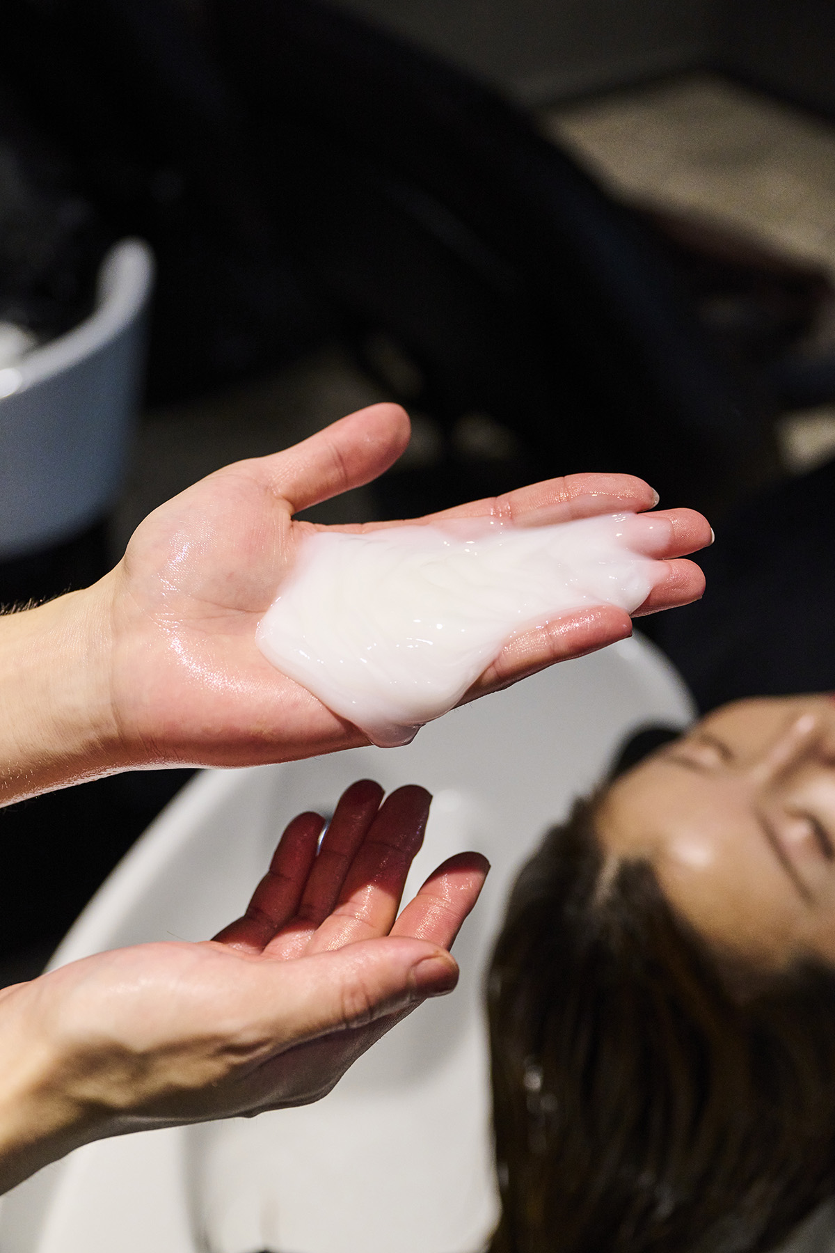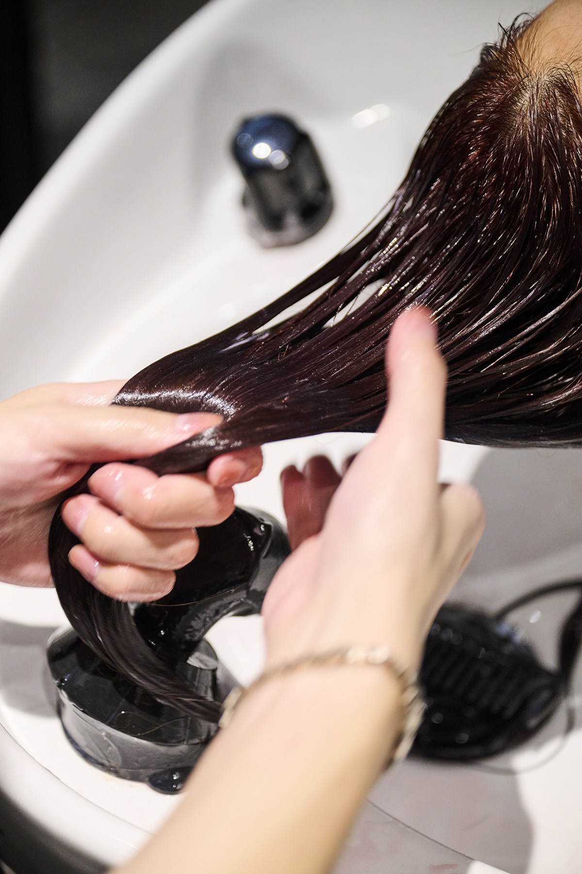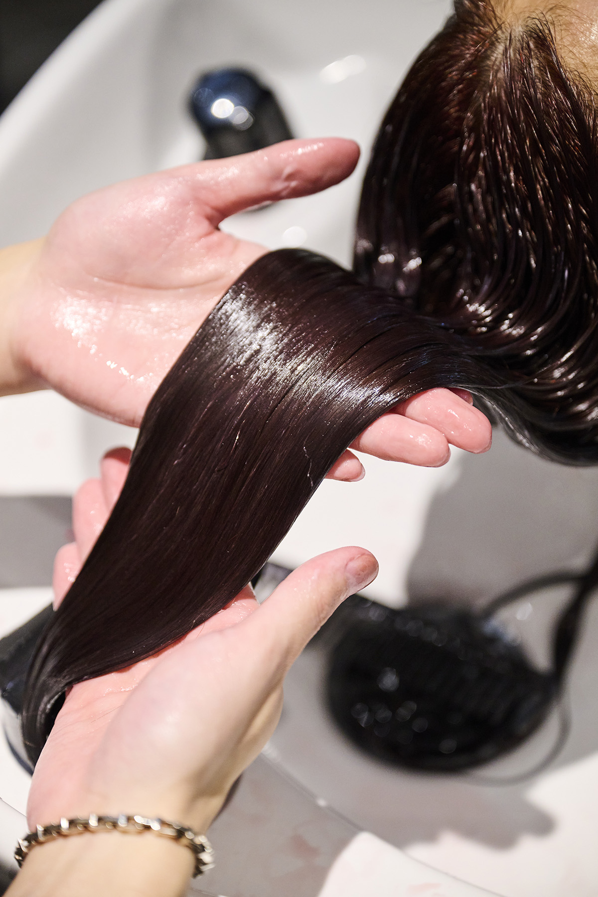 カウンセリングでは、「クセの種類」「ダメージの度合い」の観点で髪の状態を確認して、適切な施術を見極めます。上質な深みカラーで見た目を仕上げるだけでは、ツヤは生まれません。ベルベットなツヤを生むためには、髪自体にハリとコシを出す必要があります。