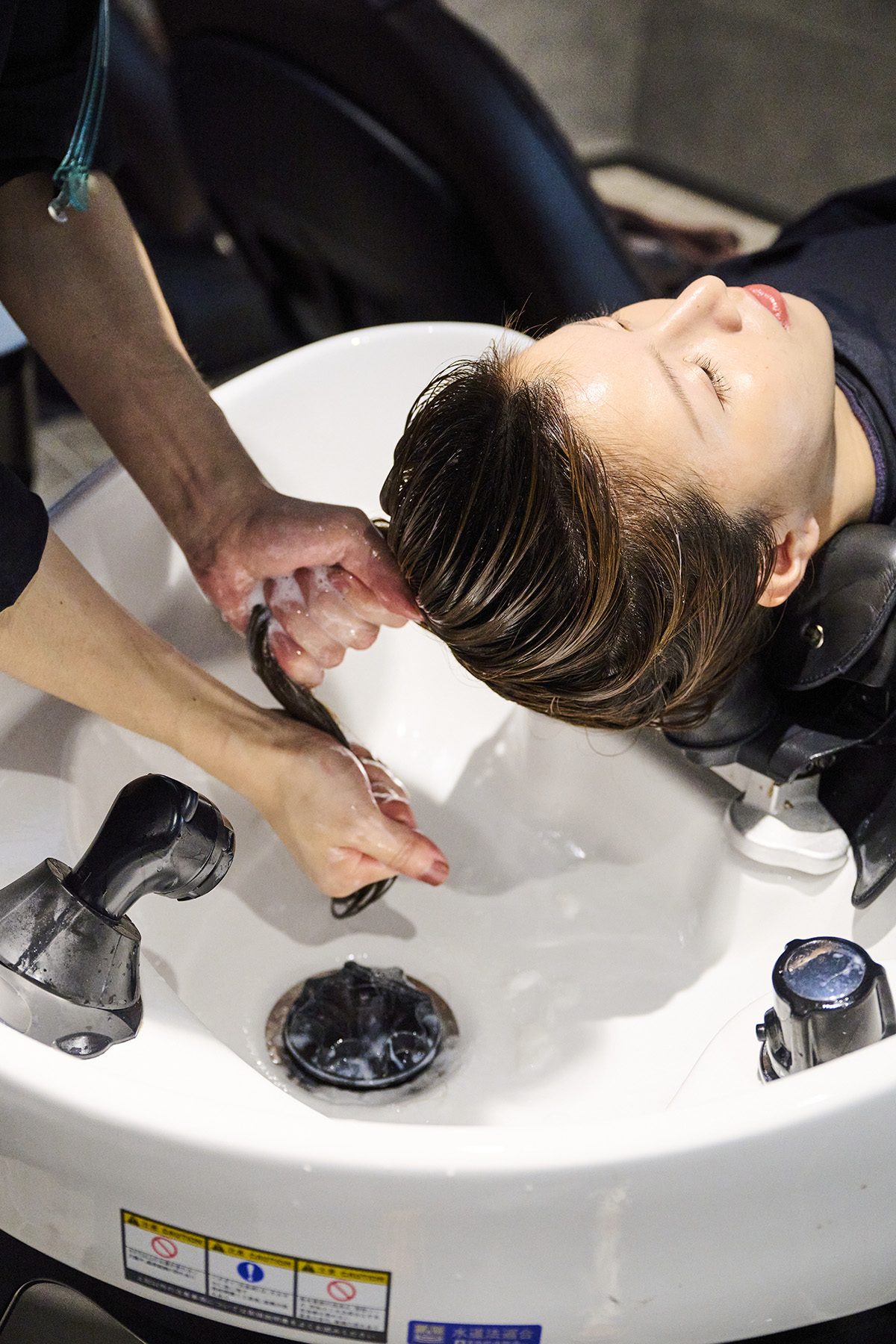 「ストレートヘア×深みカラー=まとまりのあるツヤ」は上質さを演出するための鉄板コンビ。今回のモデルさんのアンダートーンは10~11レベルで、鮮やかな色が出やすいため、トーンダウンして深みを調整します。日頃のホームケアでベースは整っているため、酸熱トリートメントを提案します。