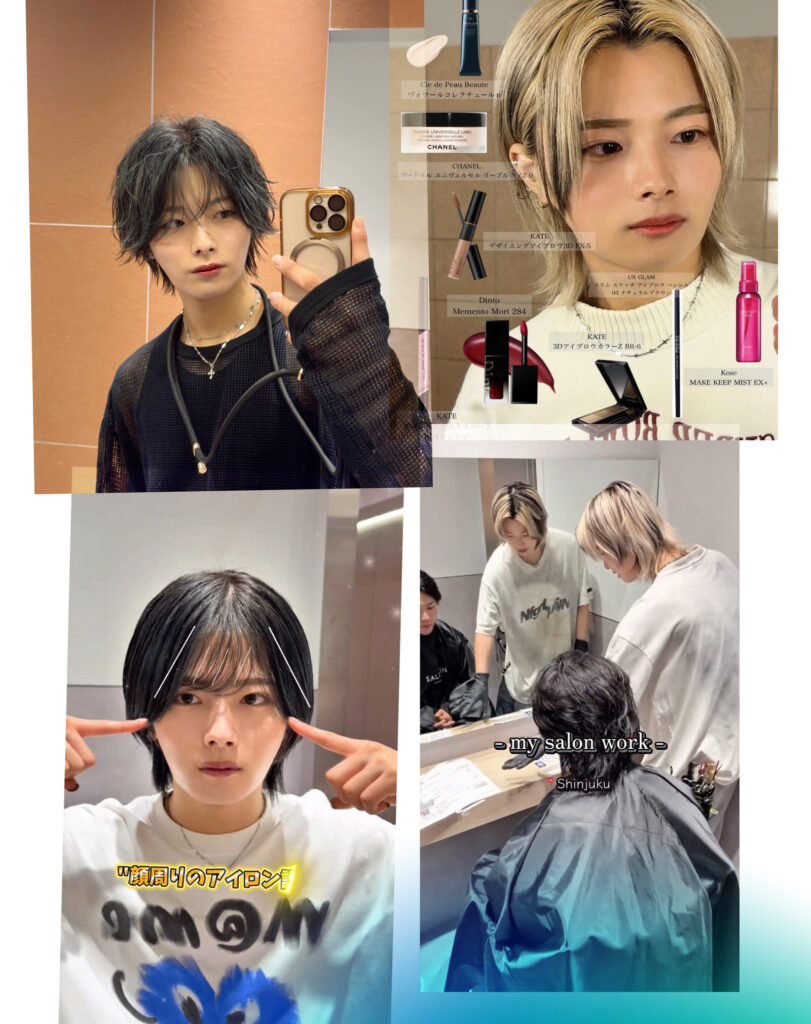 「学生時代は何も発信してなくて。ただ、メンズ特化で存在感のある美容師になりたい気持ちはずっとあったので、就職したら早く始めようと決めていました。編集も撮り方も分からないから、メンズセットで有名な人の動画を参考にして、YouTubeではSNS仕組み解説をひたすら見て、自分の投稿に落とし込む。その繰り返しです。最初は毎日、営業のあと5時間はかけて編集していて、身体は正直ボロボロでした。でも、やった分だけ数字に出ていたので続けられたんです」