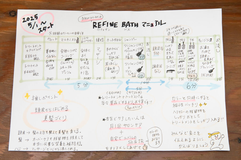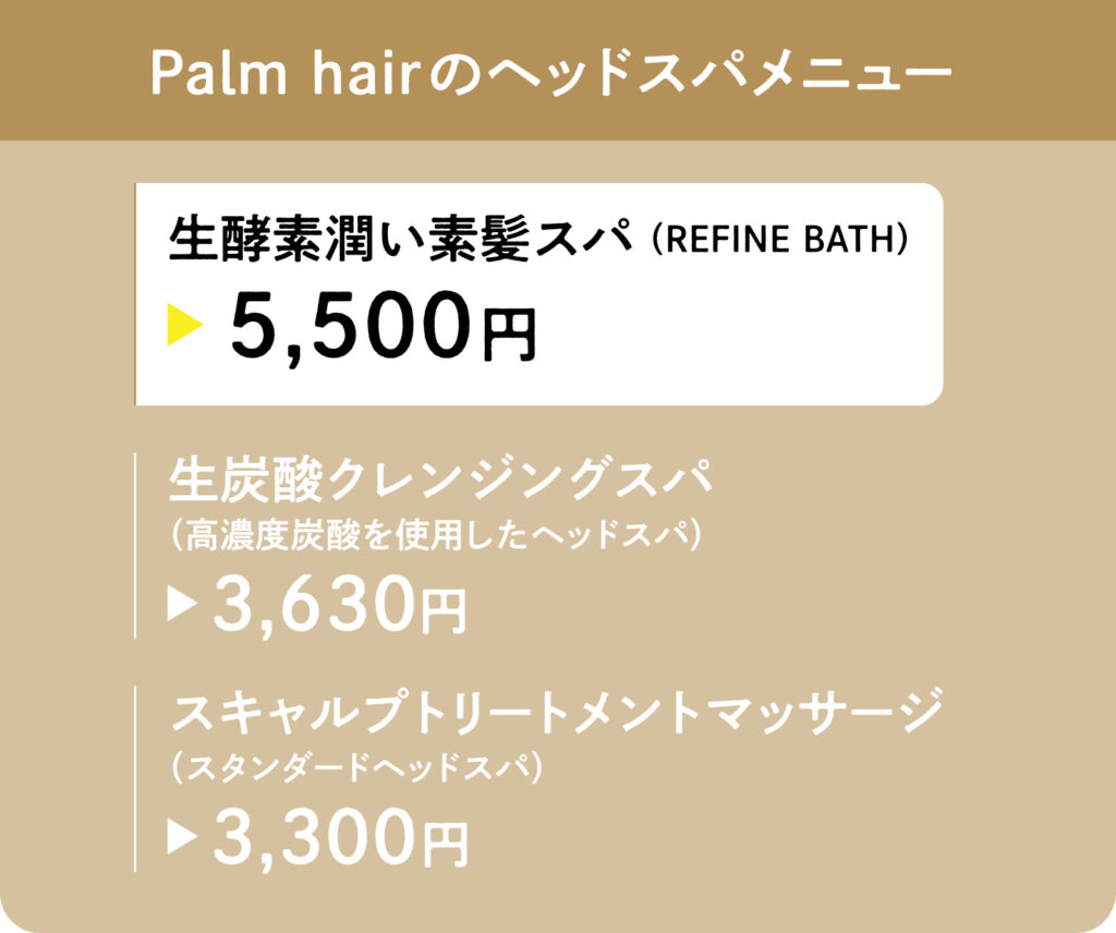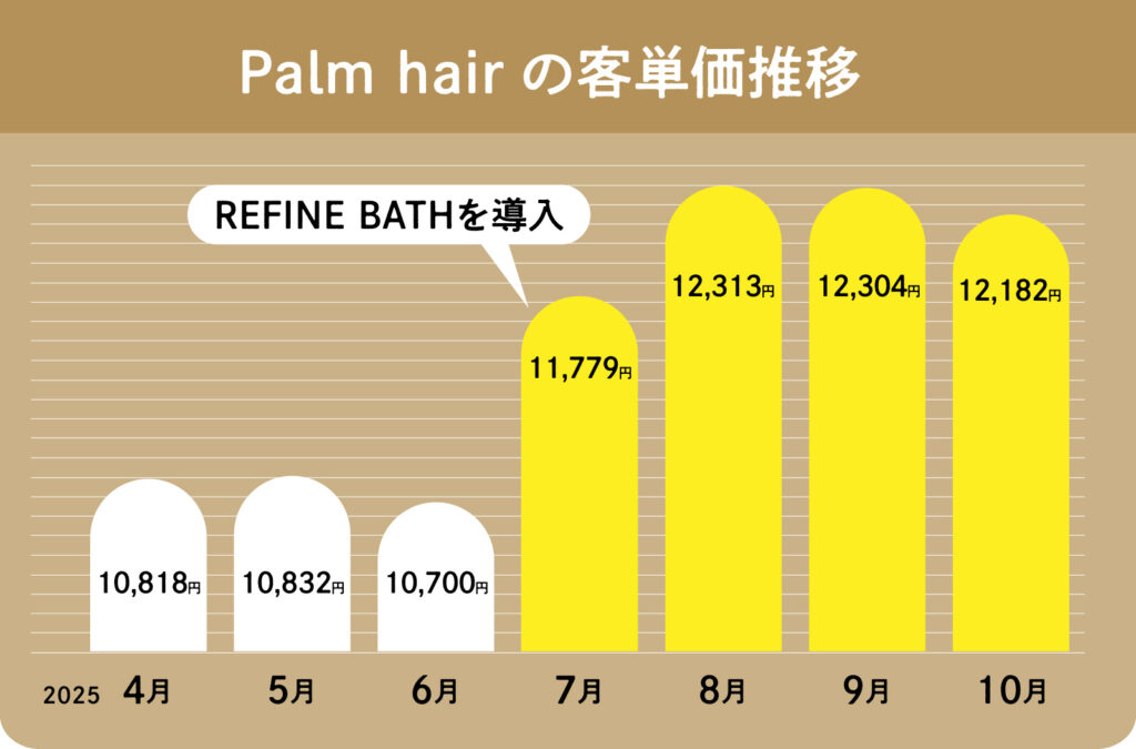 現在、リファインバスは「スペシャルケアトリートメント」として4,400円で提供しているが、頭浸浴やマッサージと組み合わせた「プレミアムケアトリートメント」(8,800円)など、他メニューを自在に応用した展開も結果につながっている。