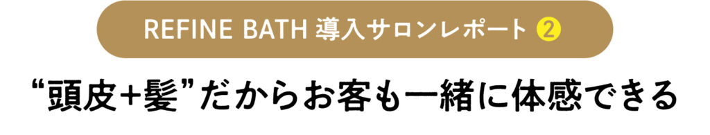 専門店を展開するほどヘッドスパに力を入れる同店。ヘッドスパ客=「ケア意識も高い」ため、ホームケアと連動しているREFINE BATHは店販につながりやすい。