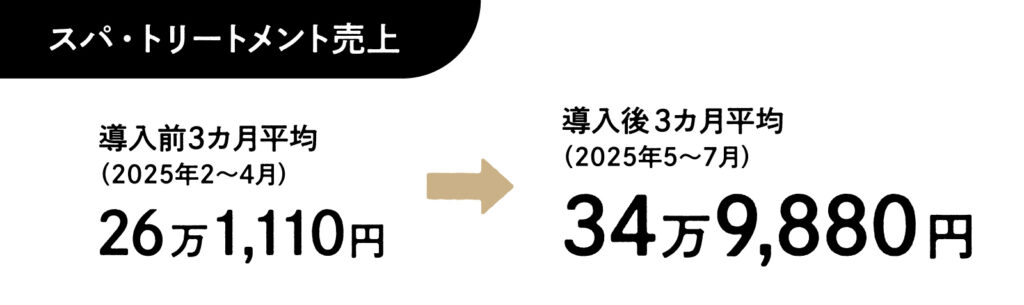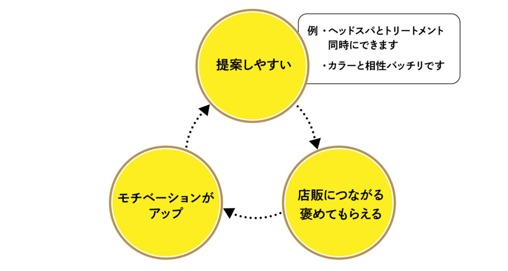 「さらさらになります」「しっとりします」ではなく、「スパとトリートメントが両方できます」などと具体的に差別化できるため説明しやすい。スパ技術を褒めてもらえたり、店販購入につながったりと、士気が上がるサイクルが自然と生まれている。