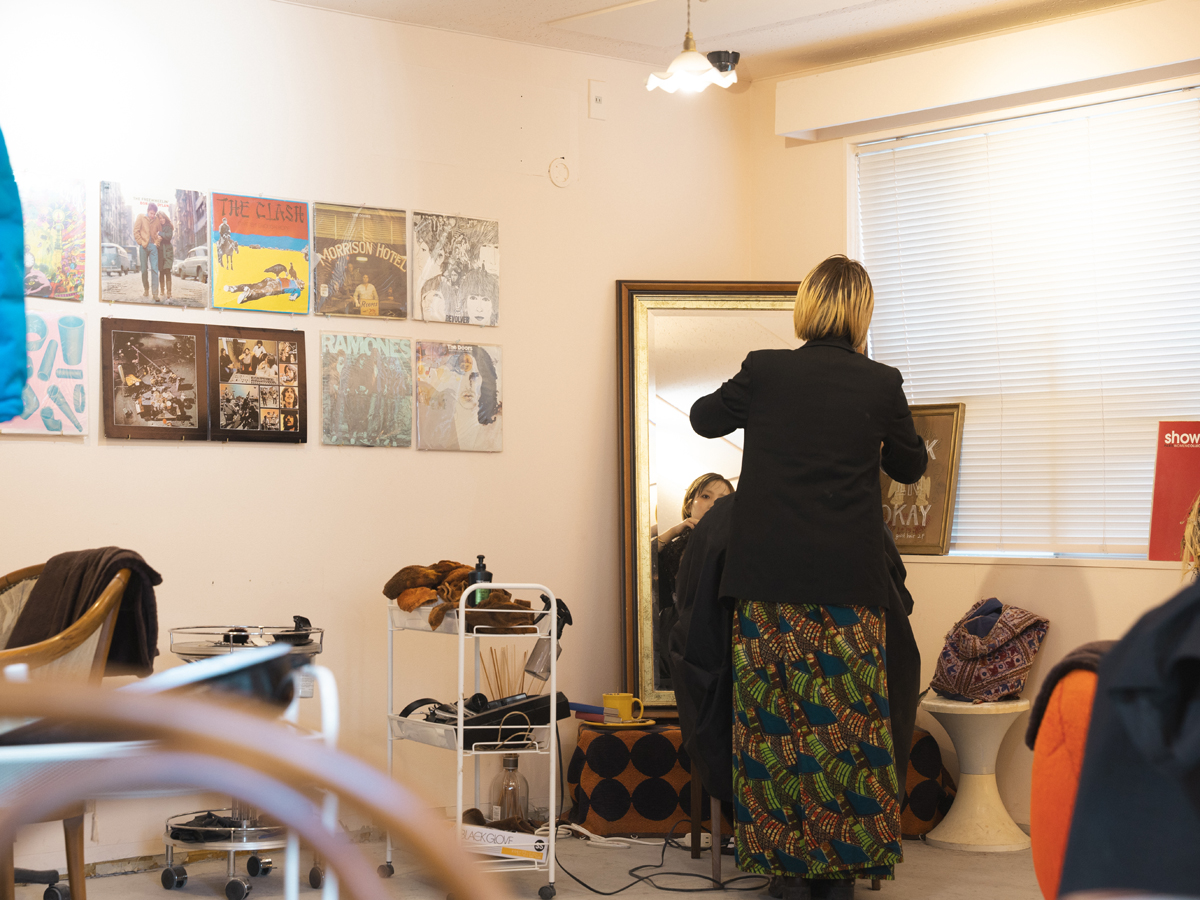 2階のヘアサロンには、つくりかけの誰かの部屋のような、居心地の良い雑多さがあった。