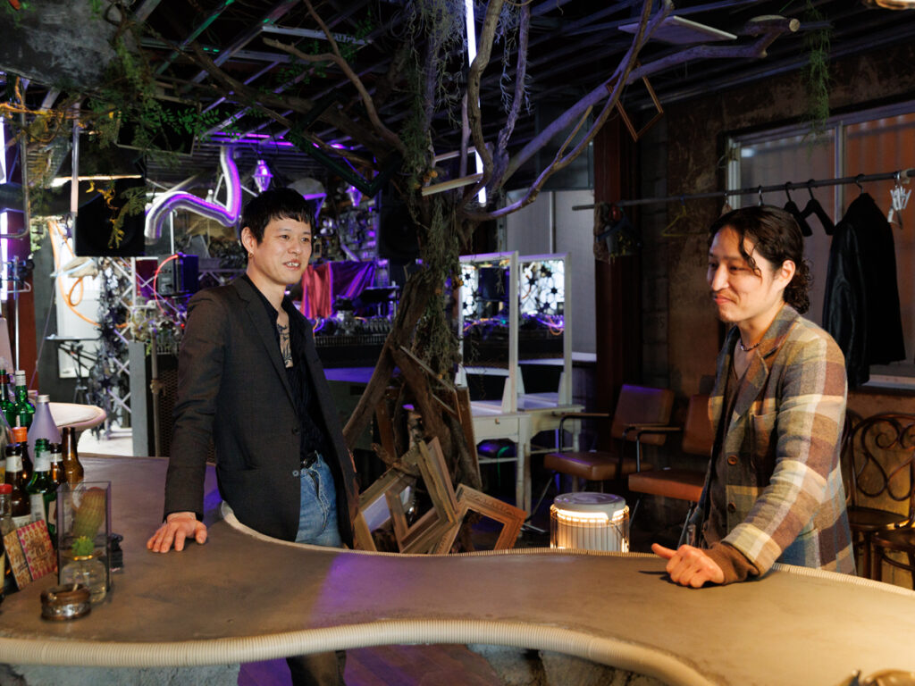 この場所を形づくる二人——ディレクター的な立ち位置の斉藤傑さんと、美容師をしながらタトゥー施術も手がける安達さんに話を聞いた。