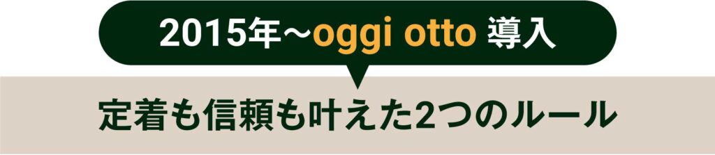 2015年からoggi ottoとともに築いてきた顧客との信頼関係。その証が、oggimutaへの移行率に表れている。地方の少人数サロンでありながら高い客単価を実現できている背景には、ルノンヘアのコンセプトを体現するoggi ottoの存在があった